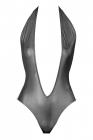Deep silver foil one-piece swimsuit with black soft touch lining